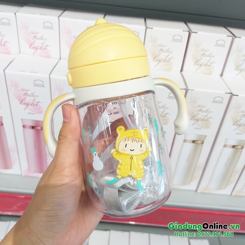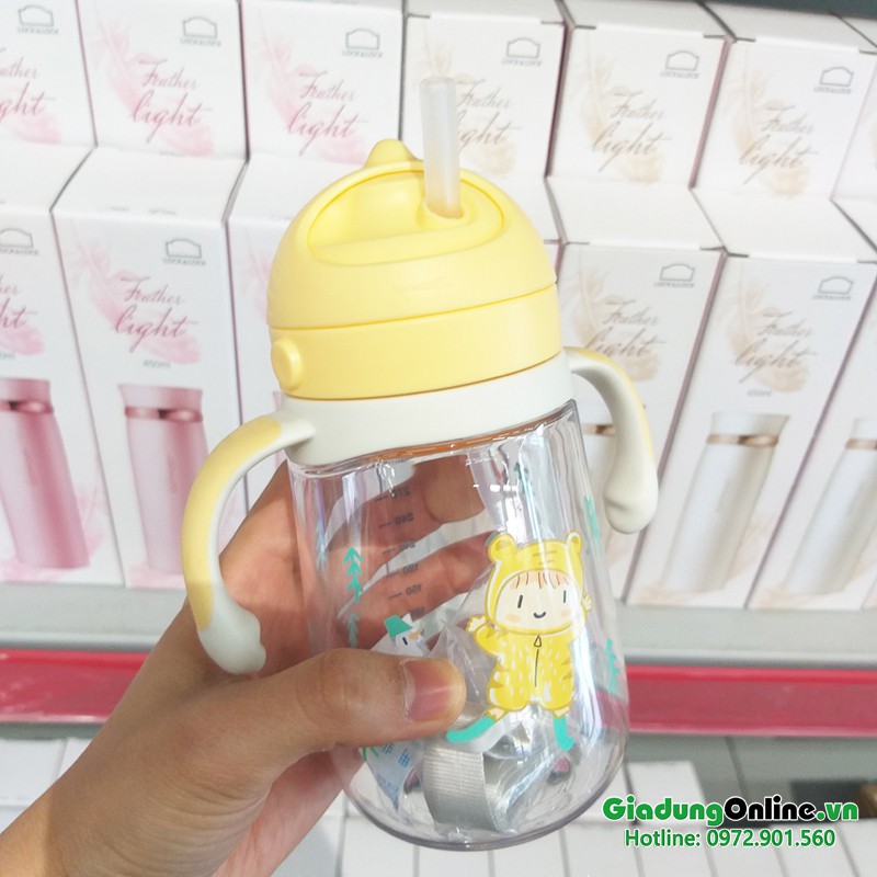 * Bình có ống hút, có tay cầm giúp bé tự cầm uống dễ dàng. Có thể tháo 2 tay cầm bình và nắp dây đeo khi bé mang bình ra ngoài rất tiện lợi.
