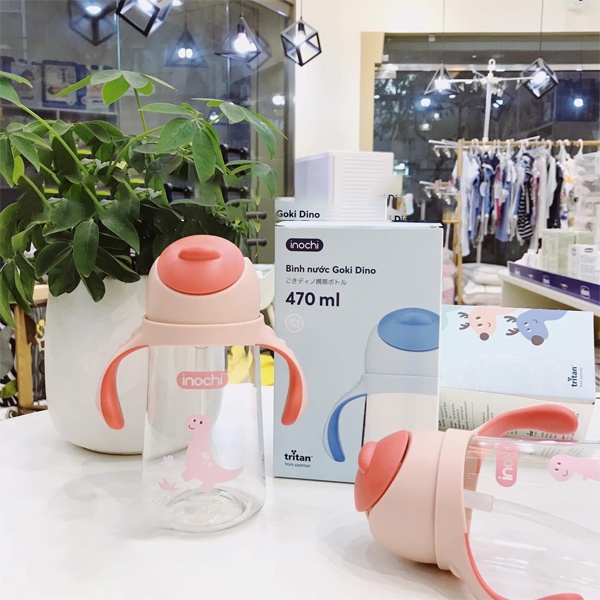 Giới thiệu Bình Nước Có Tay Cầm Goki Dino 470ml Tiêu Chuẩn Nhật Bản Cho Bé