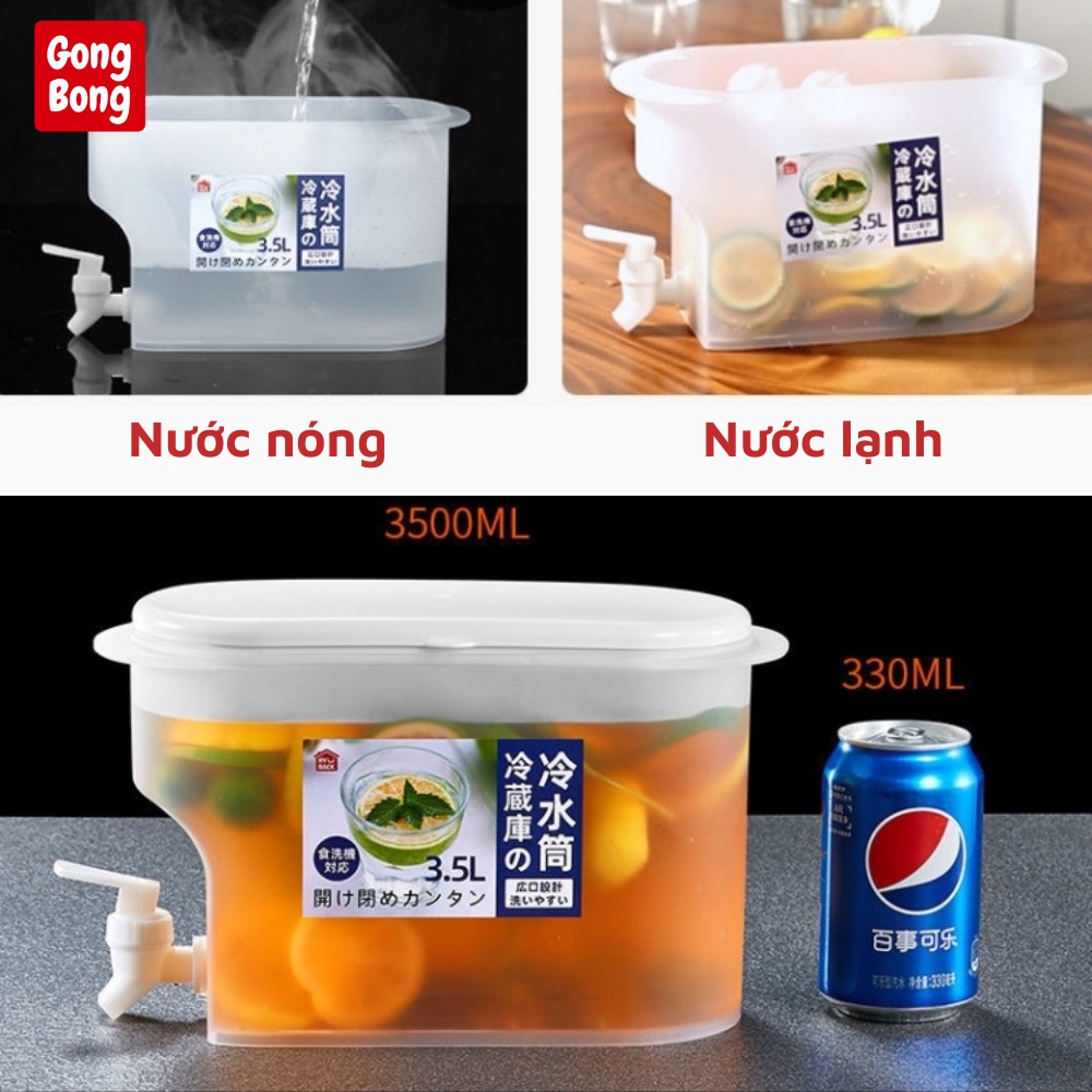 Giới thiệu Bình Nước Có Vòi Để Tủ Lạnh, Nhựa Dẻo PP Cao Cấp, Công Nghệ Nhật Giữ Nhiệt, Dung Tích 3.5L