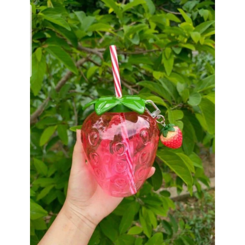 Bình nước dâu tây hót tren . bình có thiết kế quả dâu đẹp mắt . có tặng kèm móc quả dâu và ống hút đáng yêuGiá CNX