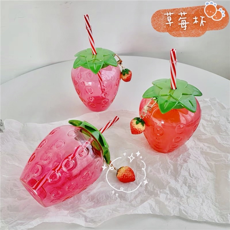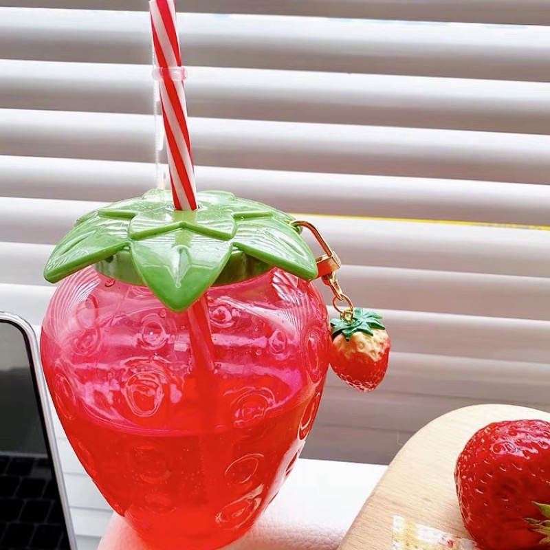 Nhà cửa & Đời sống > Bộ đồ bàn ăn > Bình nước & phụ kiện || Bình Nước Dâu Tây Kèm Ống Hút Và Móc Khoá Trang Trí ULZZANG 500ML Nhựa Cao Cấp Ly Giữ Nhiệt Phong Cách Hàn QuốcCòn hàng