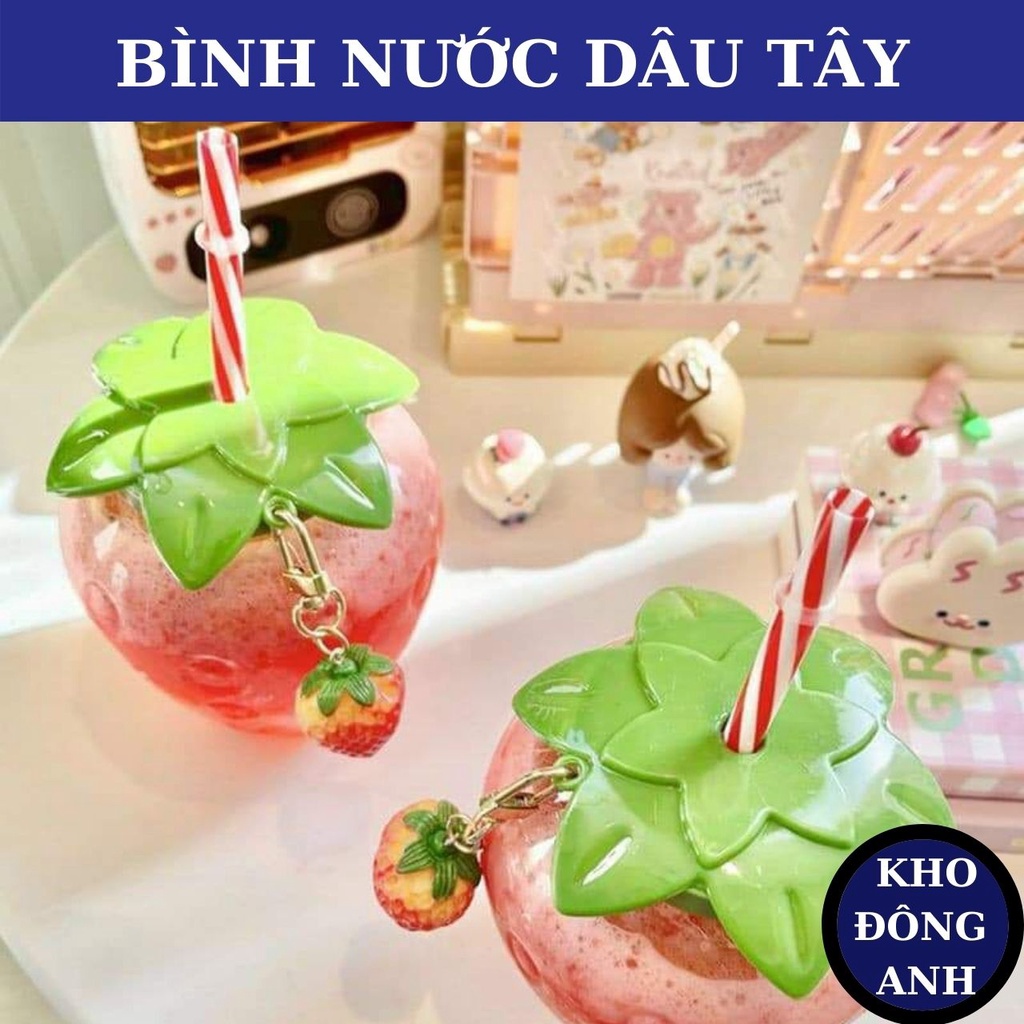 Bình Nước Hình Qủa Dâu Tây Dung Tích 500ml Tặng Kèm Ống Hút Và Móc Khóa Dung Siêu Yêu Siêu Tiện Dụng