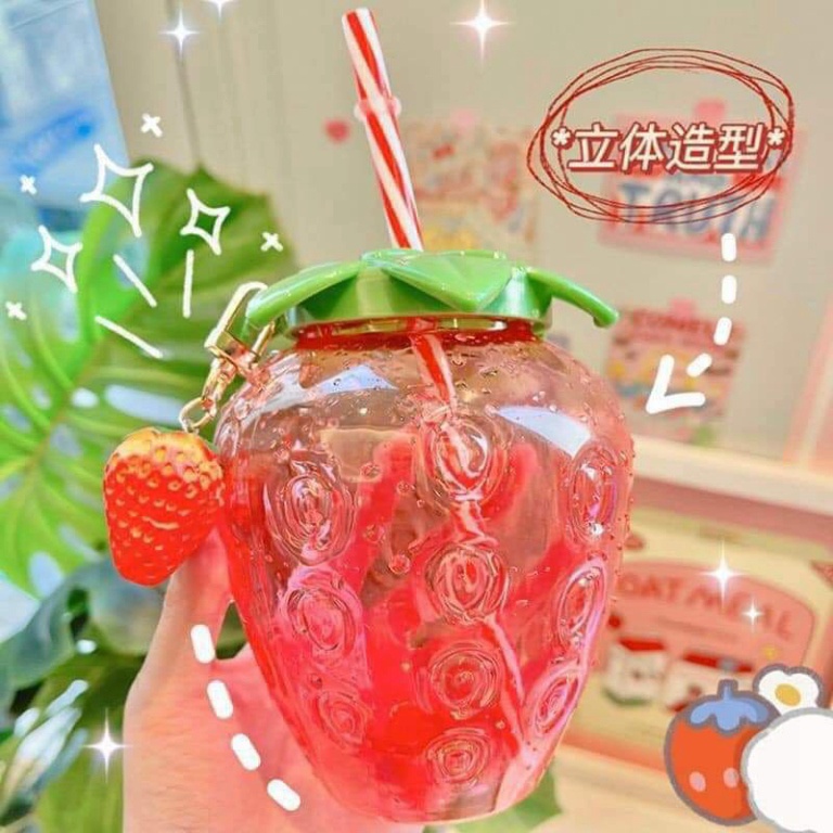 🍀Bình nước dâu tây siu cute, được tặng kèm ống hút, cả móc treo hình quả dâu siêu siêu đẹp lunnnnn