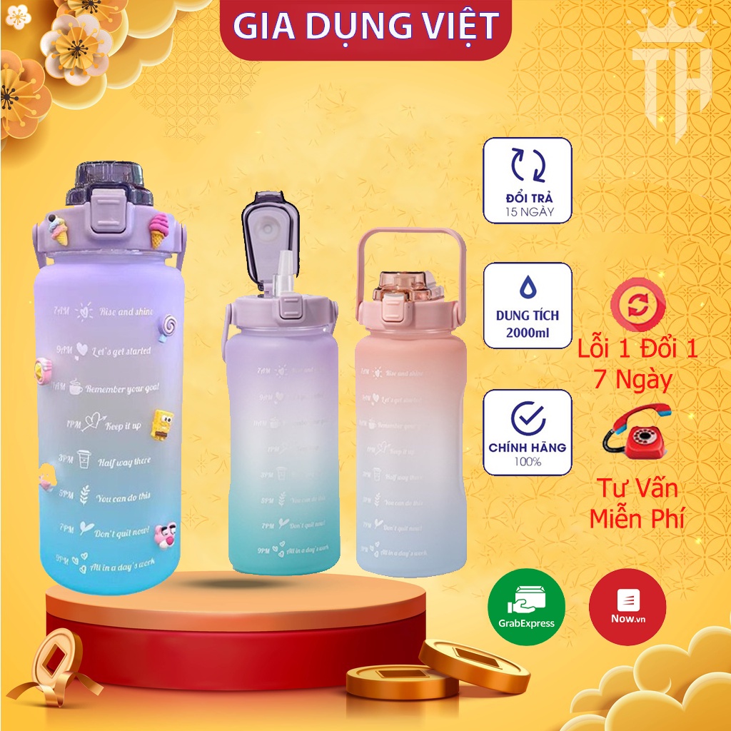 Bình Nước Dễ Thương Có Vạch Chia Giờ Uống, Bình Đựng Nước 2 Lít Dành Cho Người Lười Uống Nước