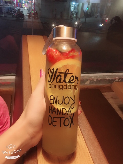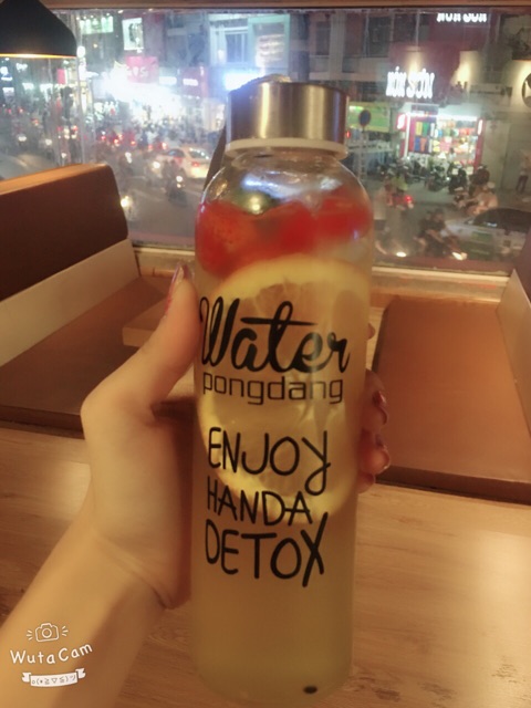 Bình nước Detox 500 ml bằng thuỷ tinh chịu nhiệt, kèm túi vải sành điệu.Thích hợp để pha Detox, mang nước đi uống........
