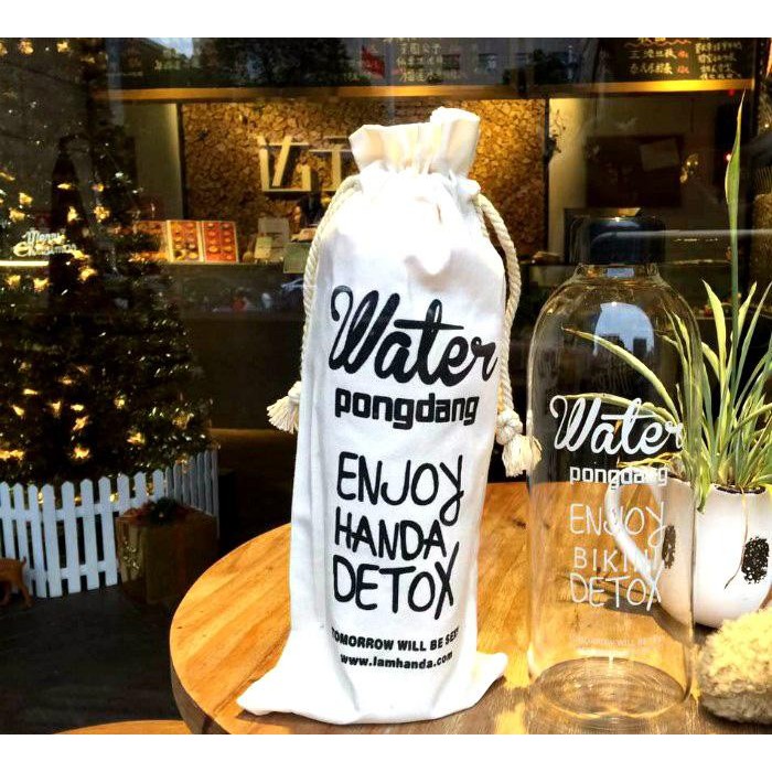 Bình nước Detox đẹp " Water Pongdang" 1000 ml ( màu trong suốt ) - Kèm 1 Túi Vải