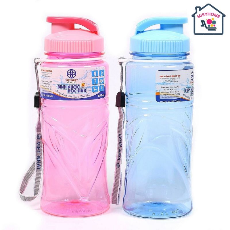 Giới thiệu Bình nước đi học cho học sinh có quai xách 500ml 750ml 900ml Misy Home