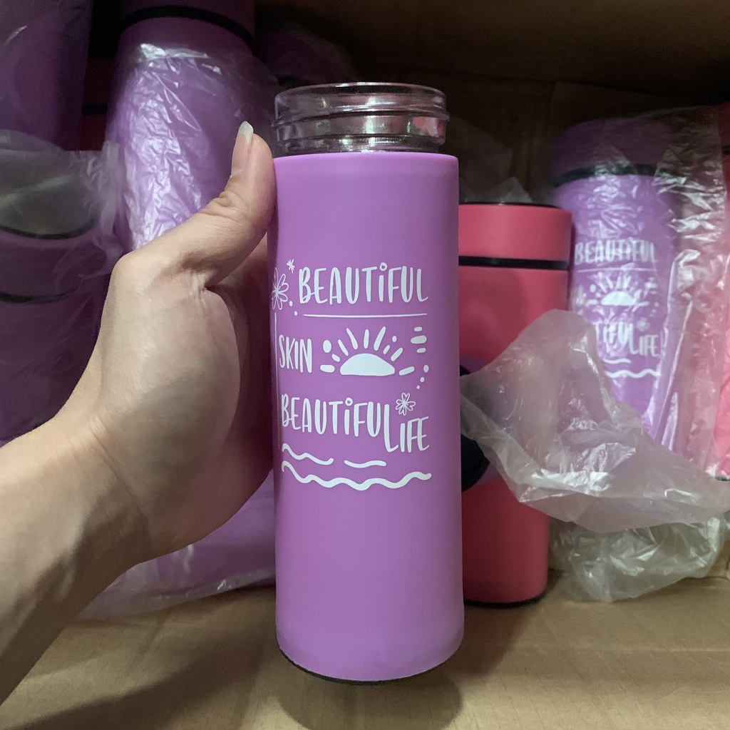 Chất liệu: Vỏ ngoài được làm bằng nhựa cứng có đọ ma sát cao để không bị tuột tay. Lõi làm bằng thủy tinh để giữ nhiệt.