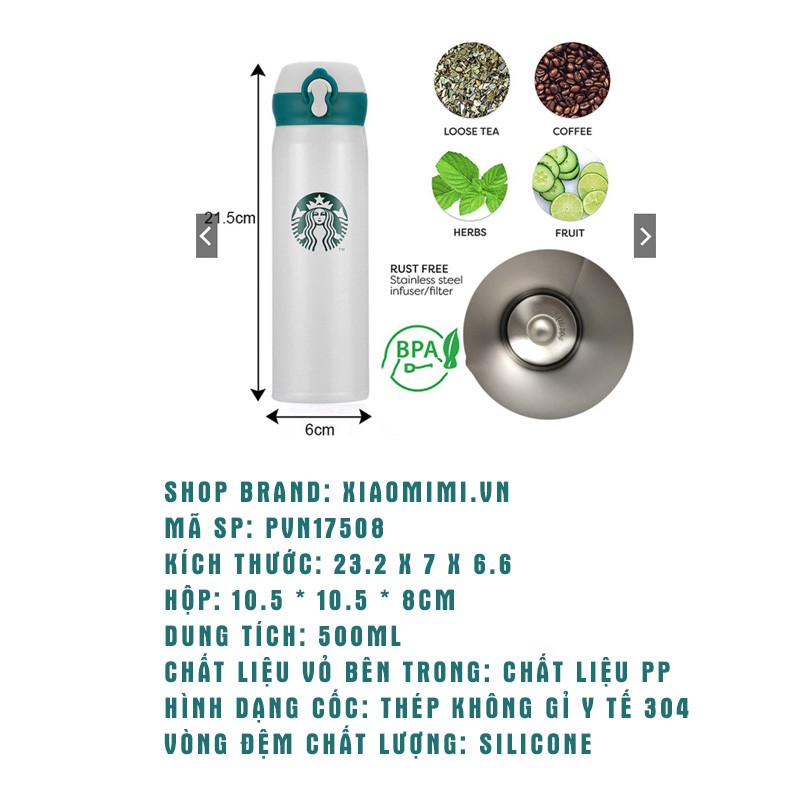 Giới thiệu Bình nước giữ nhiệt 500ml starbucks cute chất liệu thép không gỉ 304 XIAOMIMI.VN PVN17508