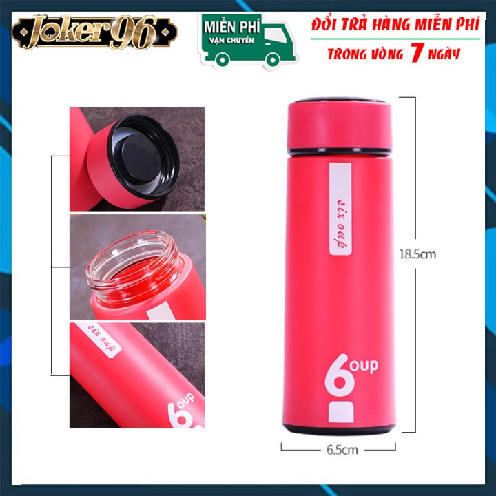 Bình nước giữ nhiệt 6UP lõi thủy tinh 2 lớp cao cấp, đẹp mắt