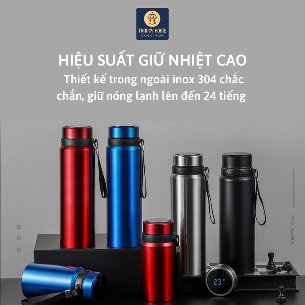 Bình nước giữ nhiệt có màn hình Led dung tích 1000ml-1500ml, Bình đựng nước Inox 304 BTC04.