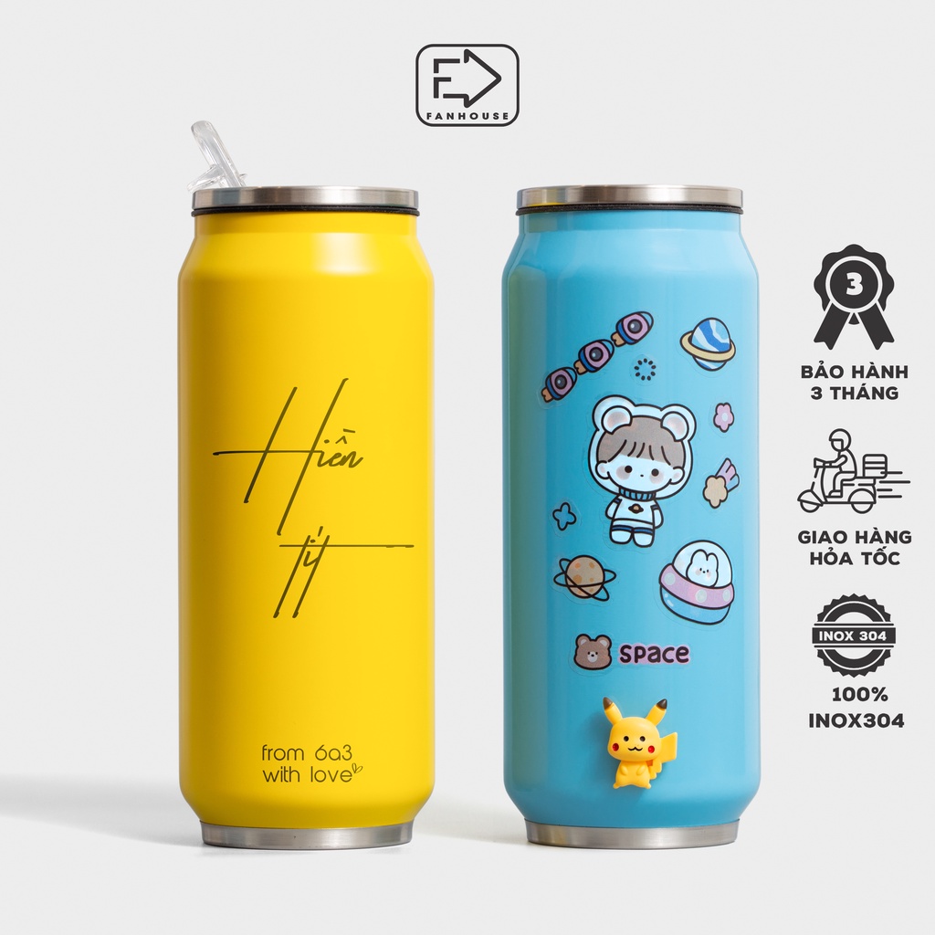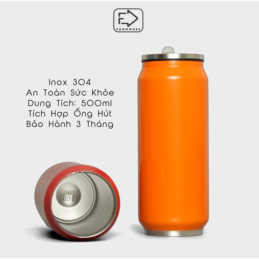 Bình nước giữ nhiệt Coca 500ml Fan House có ống hút inox 304 khắc tên theo yêu cầu