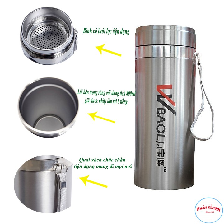 – Bình Giữ Nhiệt Inox 304 Cao Cấp VV BaoL 800ml giữ nhiệt đến 8 tiếng khả năng bảo quản nhiệt tốt giúp bạn luôn thưởng thức được các thức uống ngon miệng hơn .