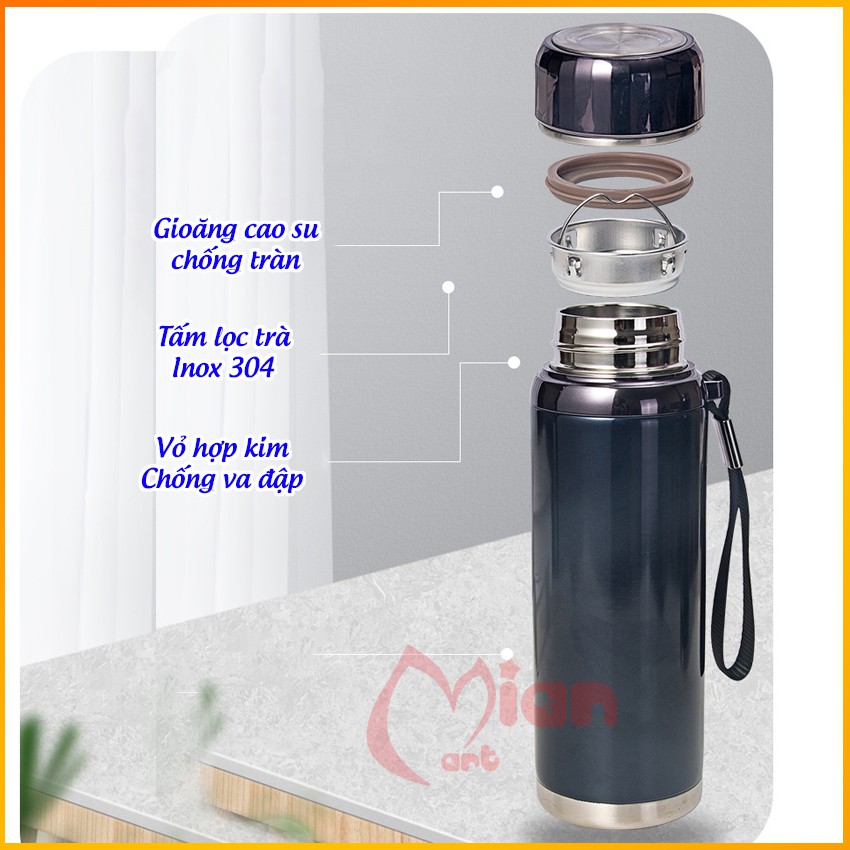 - INOX SUS 304 chống gỉ; Vỏ bình đựng nước giữ nhiệt là hợp kim, chống sốc và chống va đập cực tốt;