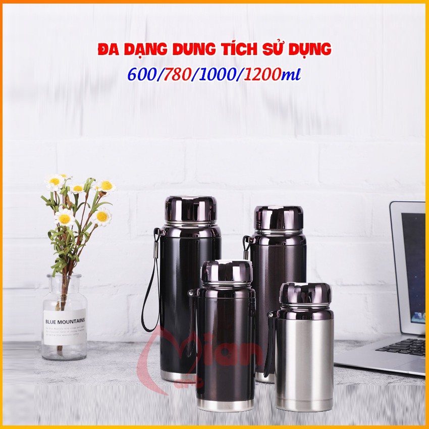 Bình nước giữ nhiệt 10-15 tiếng MIAN MART - Dung tích 600/780/1000/1200ML INOX cao cấp - BH 3 thángTẶNG KÈM KHĂN LAU SIÊU THẤM