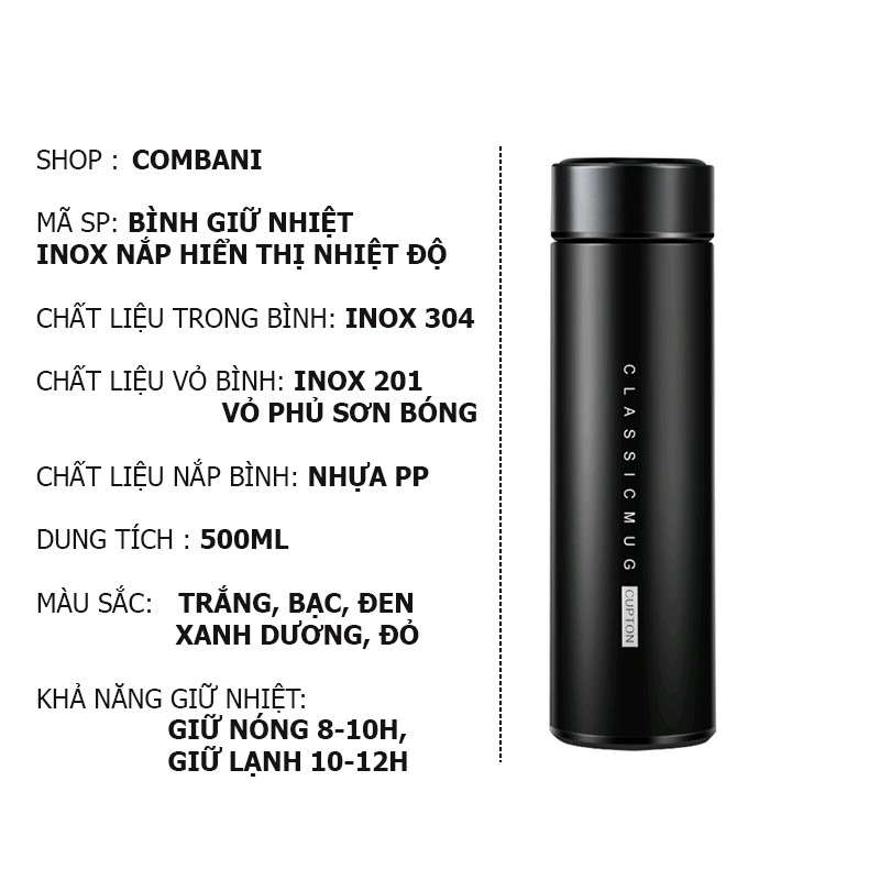 Bình Nước Giữ Nhiệt Inox Nắp Cảm Ứng Nhiệt Độ 500ml BCU01Thông tin sản phẩm: