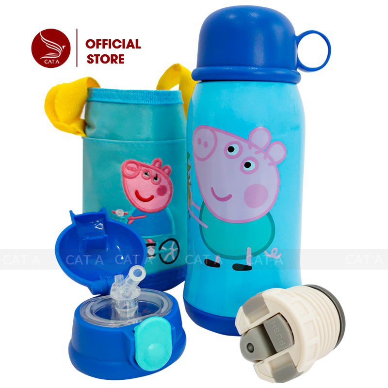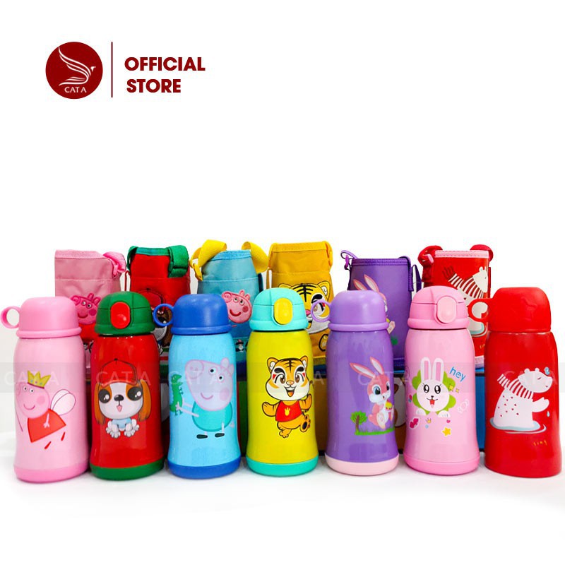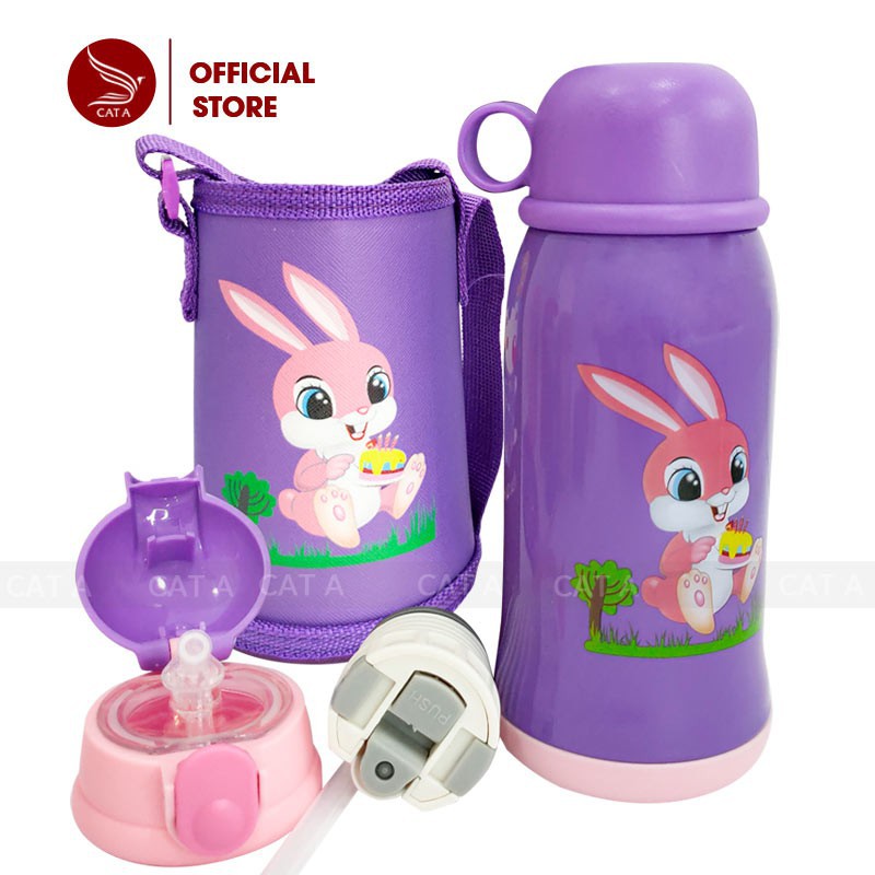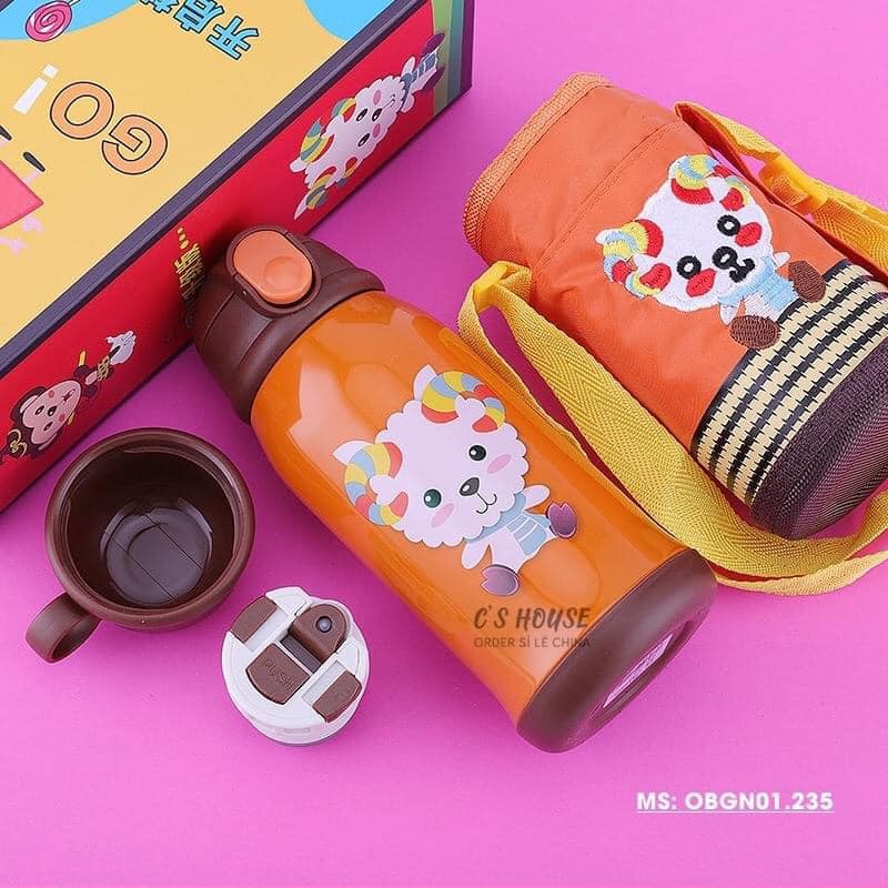 Nhà cửa & Đời sống > Bộ đồ bàn ăn > Bình nước & phụ kiện || BÌNH NƯỚC GIỮ NHIỆT TRẺ EM LÕI INOX304 - Có túi vải, ống hút đi kèm - In hình thú ngộ nghĩnh, 3 nắp đa năng [ 550ML ]Còn hàng