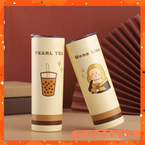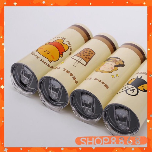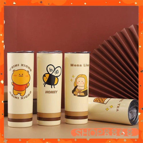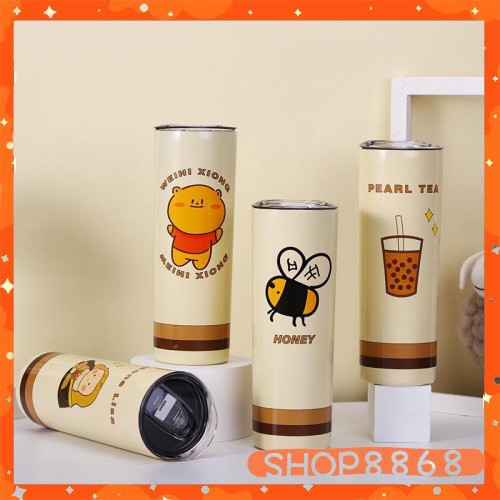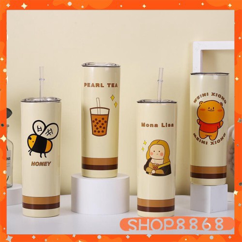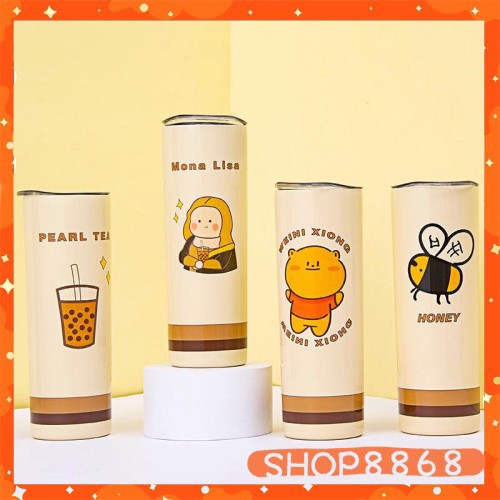 Bình Nước Hai Lớp Cách Nhiệt Kèm Ống Hút Hình Gấu Dễ Thương 650mlcó tặng kèm cây cọ ly