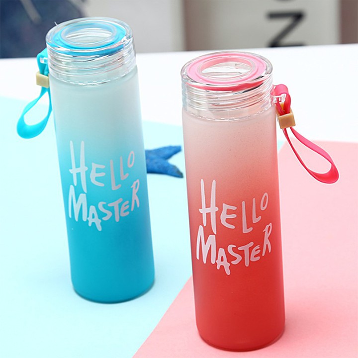 Bình Nước Hello Master Dung Tích 450ml Nhiều Màu Cá Tính, Siêu Bền Đẹp, Có Dây Xách Thời Trang