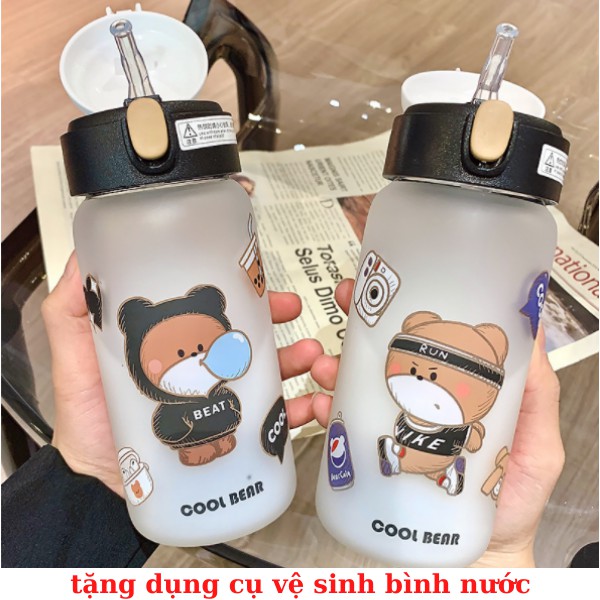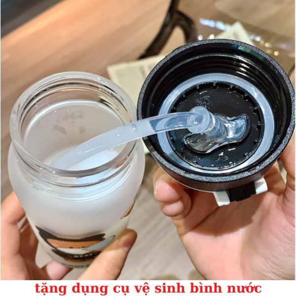 BÌNH NƯỚC THỦY TINH HÌNH GẤU CÓ ỒNG HÚT - TIỆN DỤNG HỢP THỜI TRANG