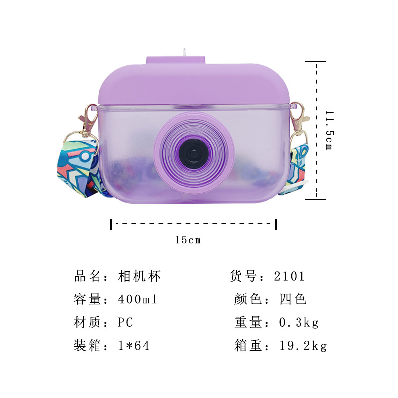 Bình nước hình máy ảnh cực cute 400ml có dây đeo xinh xắn