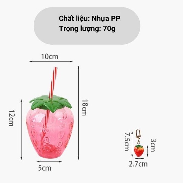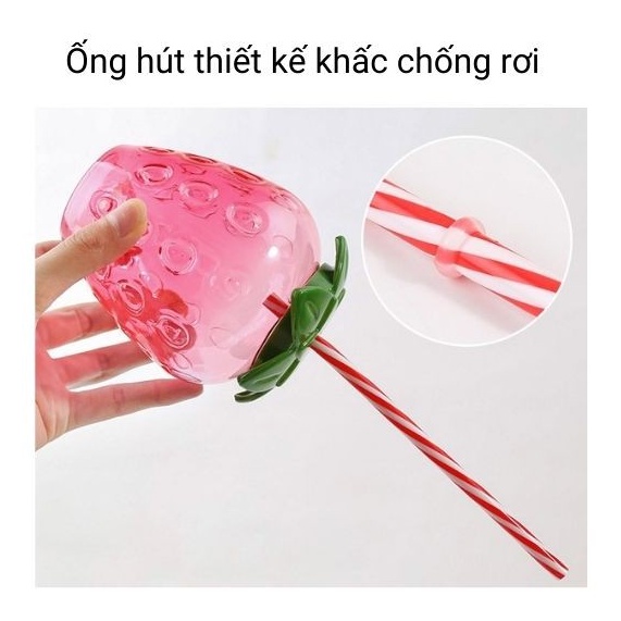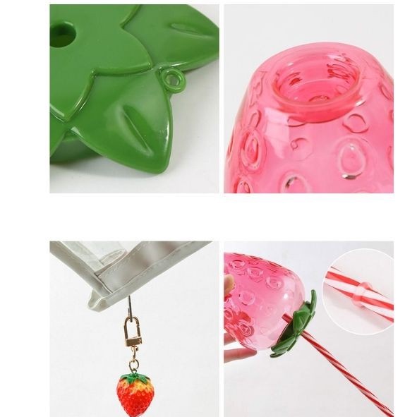 🍓Nắp vặn chắc chắn, kèm ống hút tiện dụng. Thiết kế hình dáng quả dâu tây siêu dễ thương, xinh xắn, mang phong cách Hàn Quốc