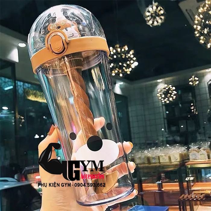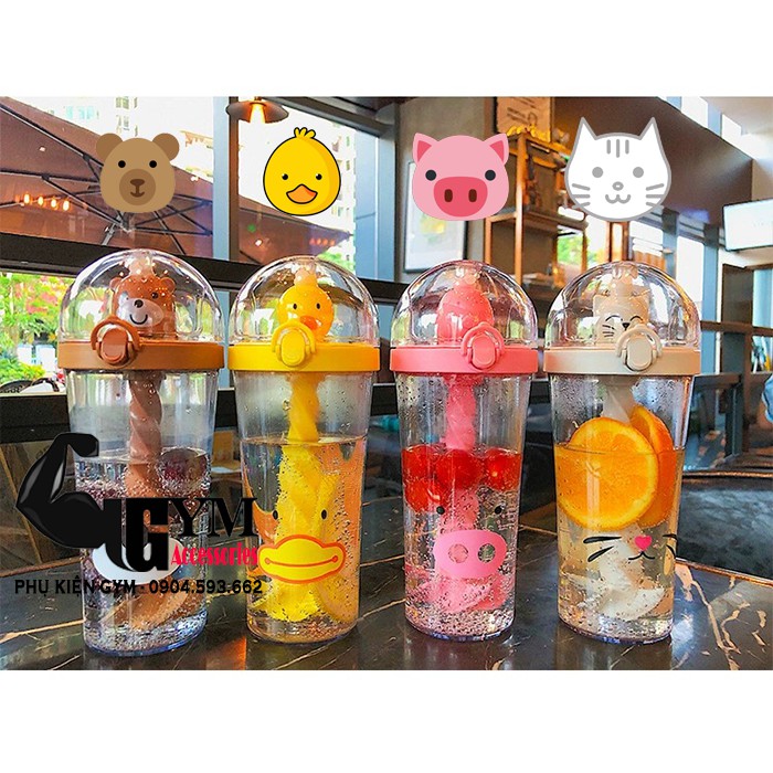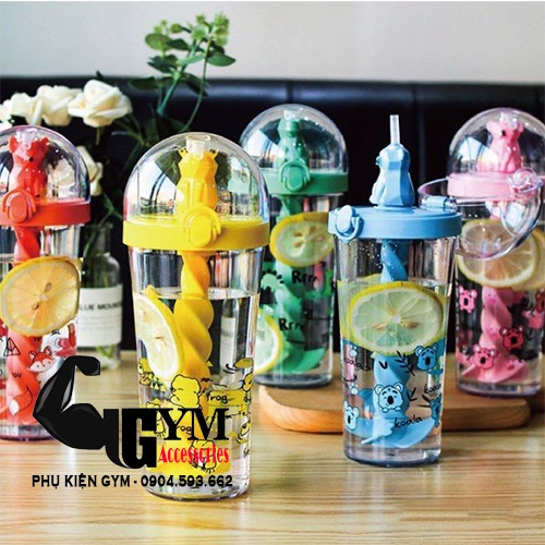 Bình nước hình thú kèm ống hút