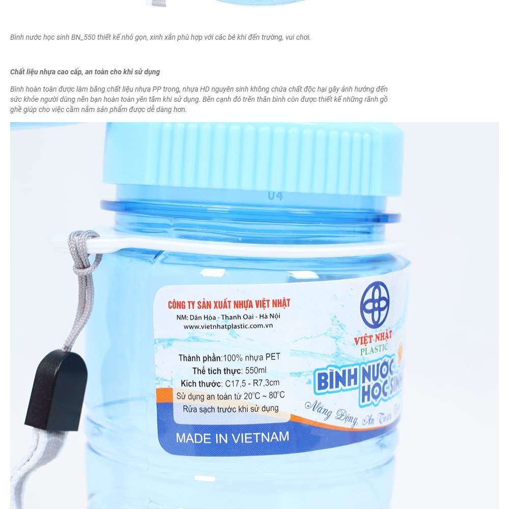 Giới thiệu Bình Nước Học Sinh VIỆT NHẬT | SONG LONG 550ML | 500ML Tiện Dụng