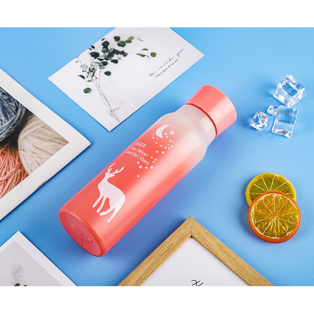 Bình nước hươu BN10 i love you trái tim thuỷ tinh bình nước cute chai nước dễ thương