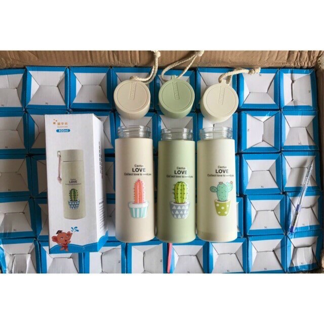 Giới thiệu Bình nước in hình xương rồng nhiều màu 400ml cute hh043