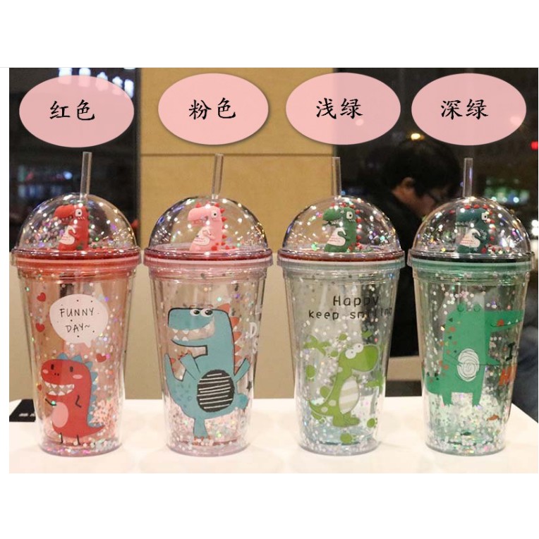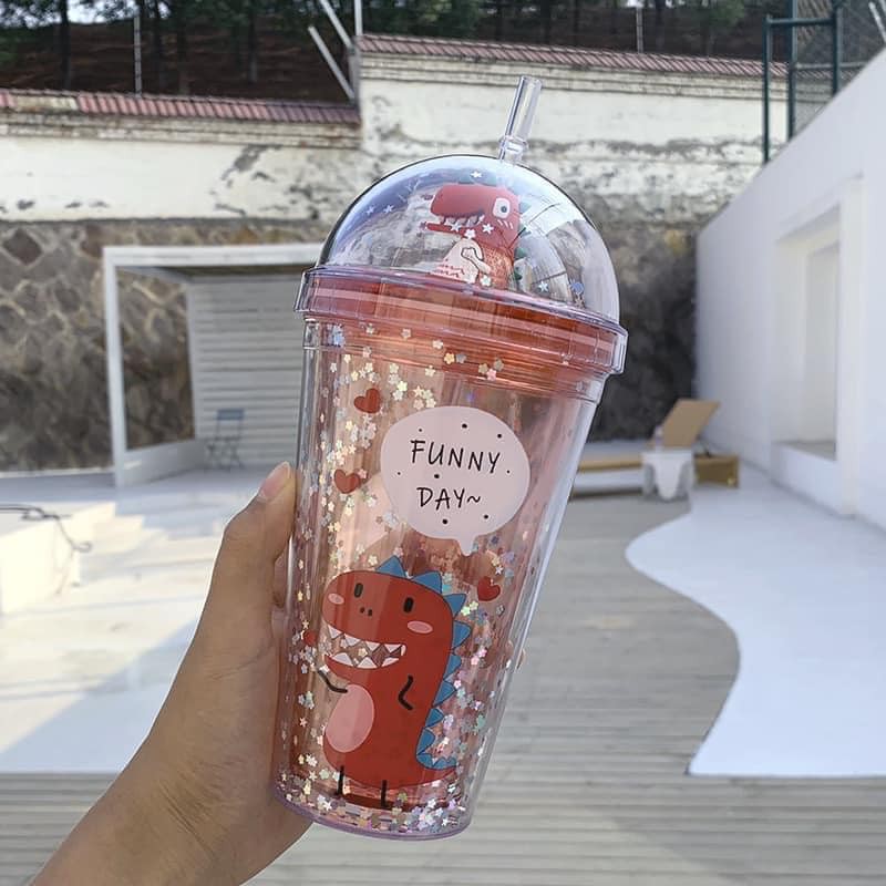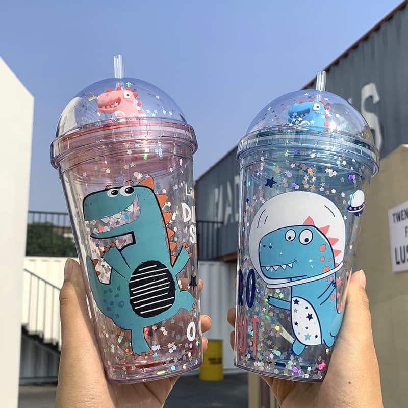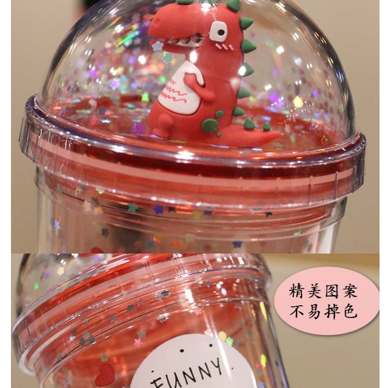 Nhà cửa & Đời sống > Bộ đồ bàn ăn > Bình nước & phụ kiện || Bình nước khủng long 3D kim tuyến giữ nhiệt hai lớp kèm ống mút kuteCòn hàng