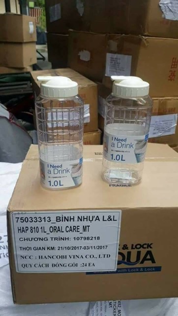 Bình nước lock and lock HAP 810.Loại bình nhựa cao cấp trắng 1L