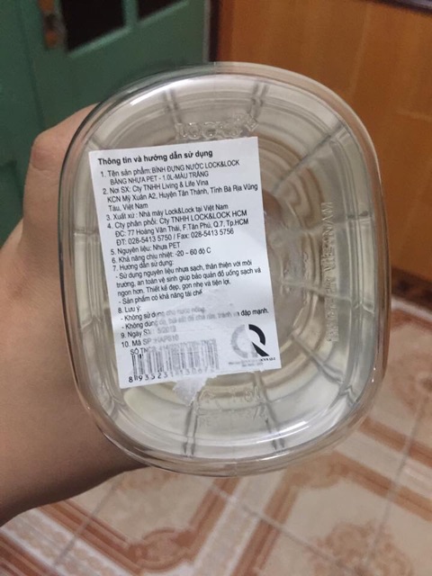 🌻💮🌻Bình nước Lock&Lock 1lít (Trắng)💲Giá lẻ 100k / 3 cái