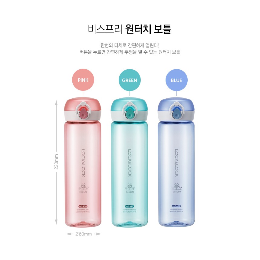 Bình nước Lock&Lock One Touch 550ml - Màu xanh dương ABF645BLUThương hiệu: Lock&lock