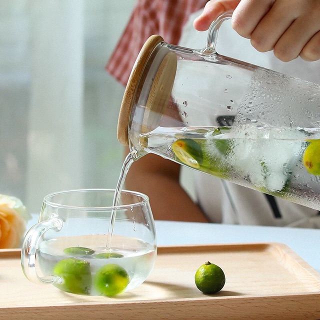 Bình nước nắp gỗ tre có dung tích 1,5Lsản xuất từ thủy tinh chịu nhiệt, trong suốt,...