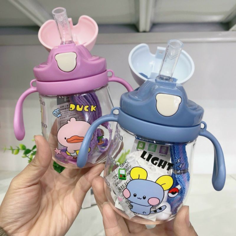 Bình nước nắp sừng hươu, có van chống sặc, kèm dây đeo tiện lợimàu sắc dễ thương, chất liệu an toàn, sáng bóng