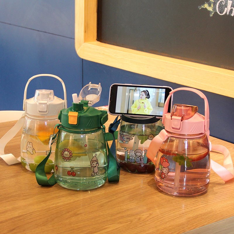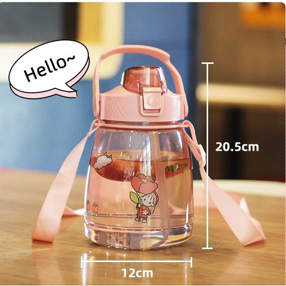 Tên sản phẩm: Bình Đựng Nước Có Ống Hút Và Dây Đeo Chéo Dễ Thương 1.3L