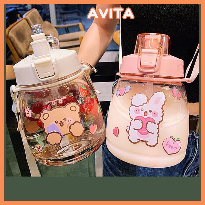 Bình Nước Nhựa Cao Cấp Dung Tích 1300ml Có Ống Hút Kèm Dây Đeo Cực Tiện Lợi Xinh Xắn Dễ Thương - Avita