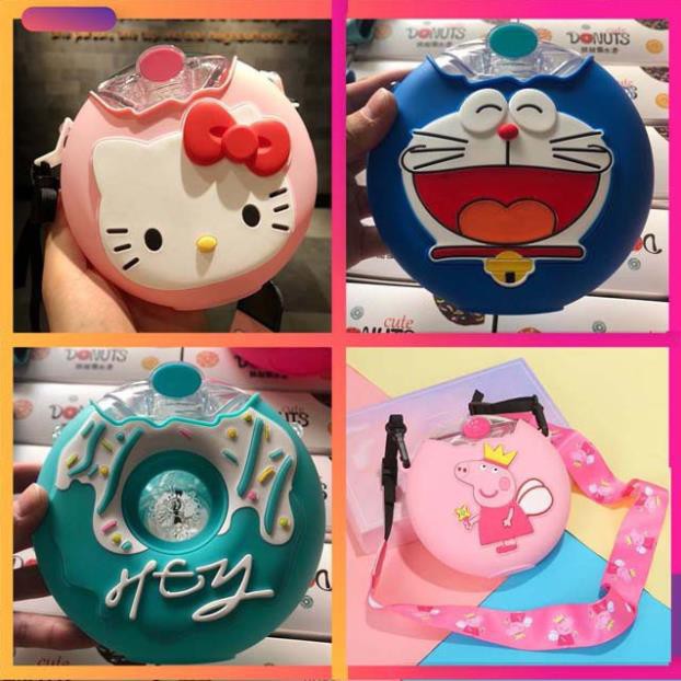 Nhà cửa & Đời sống > Bộ đồ bàn ăn > Bình nước & phụ kiện || Bình Nước Nhựa Hình Bánh Donut 380ml chất liệu Tritan và silicone -Bình đựng nước hình kitty- hình doremonCòn hàng