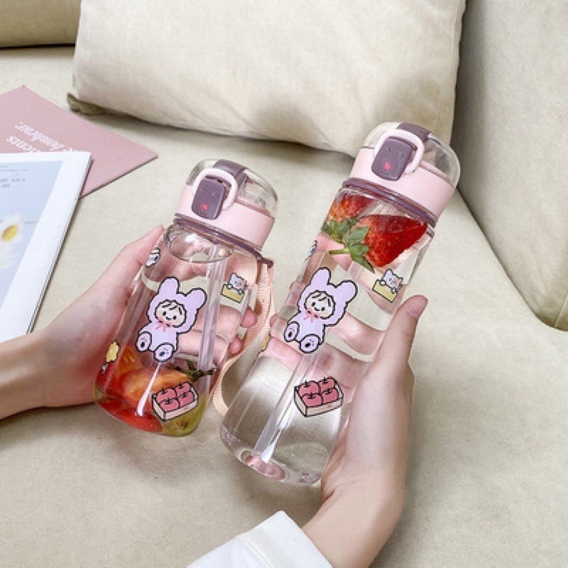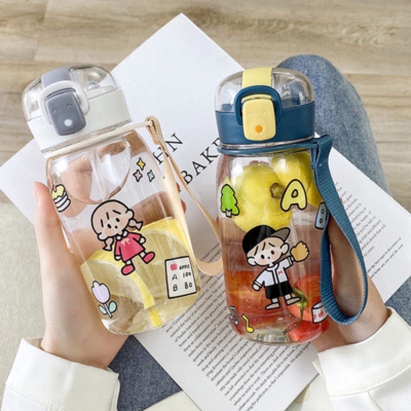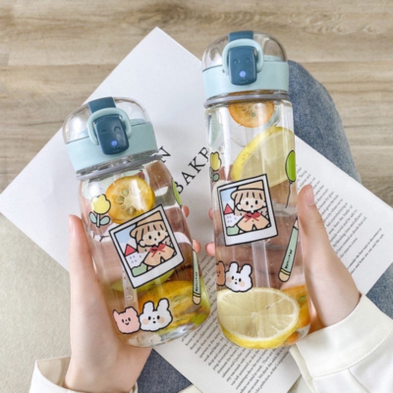 Nhà cửa & Đời sống > Bộ đồ bàn ăn > Bình nước & phụ kiện || BÌNH NƯỚC NHỰA IN HÌNH CÔ GÁI DỄ THƯƠNG CÓ DÂY XÁCH DUNG TÍCH 400 và 500mlCòn hàng