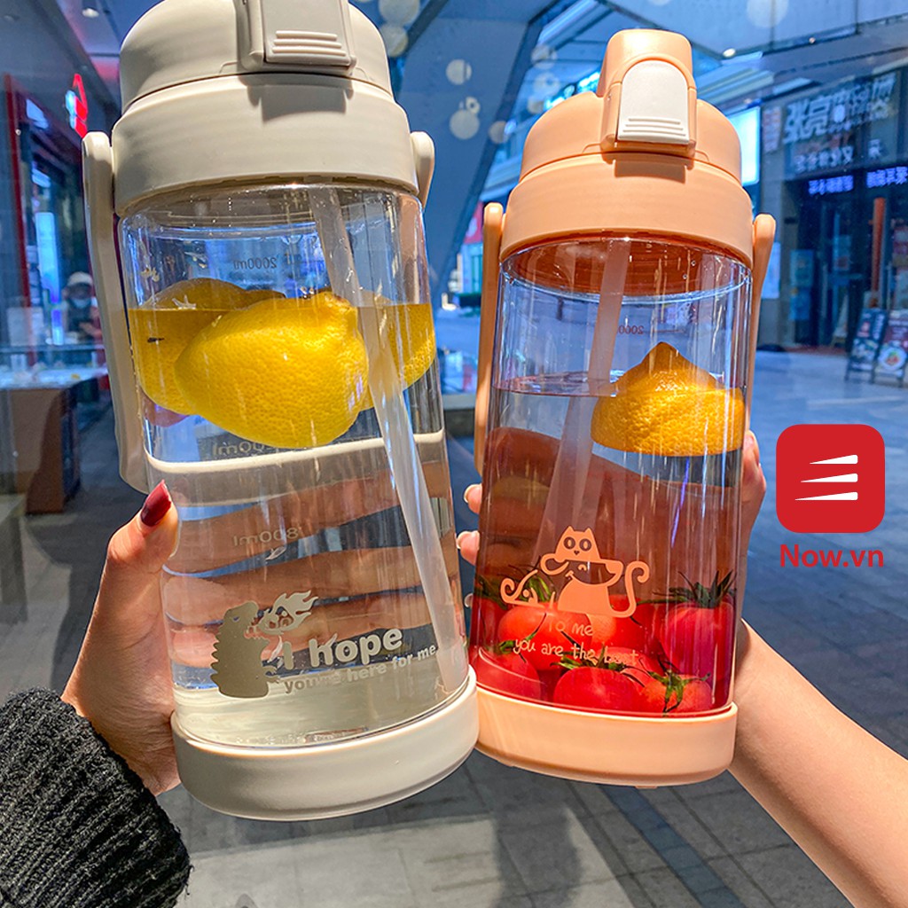 Giới thiệu Bình Nước Nhựa Siêu To Không Lồ Dung Tích 2 Lít Có Ống Hút Nút Bấm Án Toàn, Bình Đựng Nước Có Quai Xách Siêu Tiện Lợi