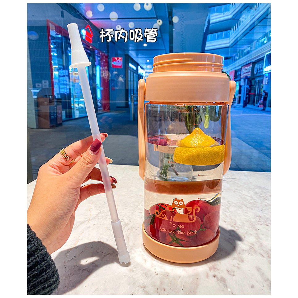 Bình Nước Nhựa Siêu To Không Lồ Dung Tích 2 Lít Có Ống Hút Nút Bấm Án Toàn, Bình Đựng Nước Có Quai Xách Siêu Tiện Lợi