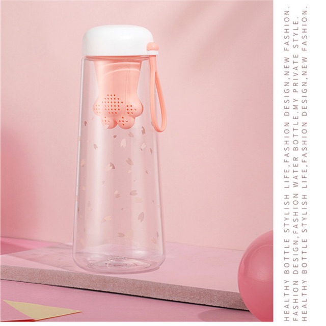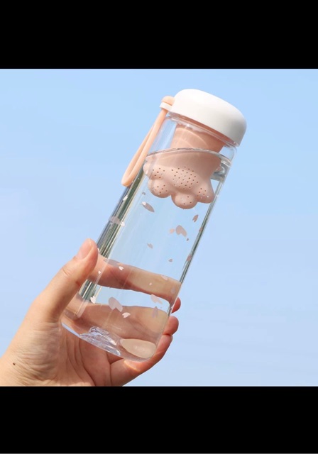 Bình nước nhựa tay mèo cute lắm lun, tay mèo vừa dễ thương vừa lọc trà được lun nè, siêu tiện lợiShop về đủ 4 màu lun ạ