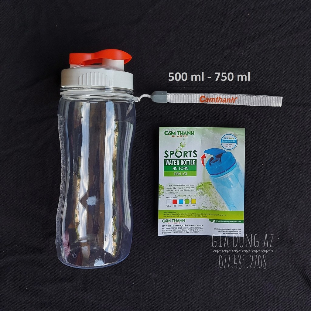 Giới thiệu Bình nước nhựa thể thao trong suốt 500ml, 750ml Cẩm Thành chất liệu nhựa PET chính phẩm an toàn, thiết kế có eo vừa tay