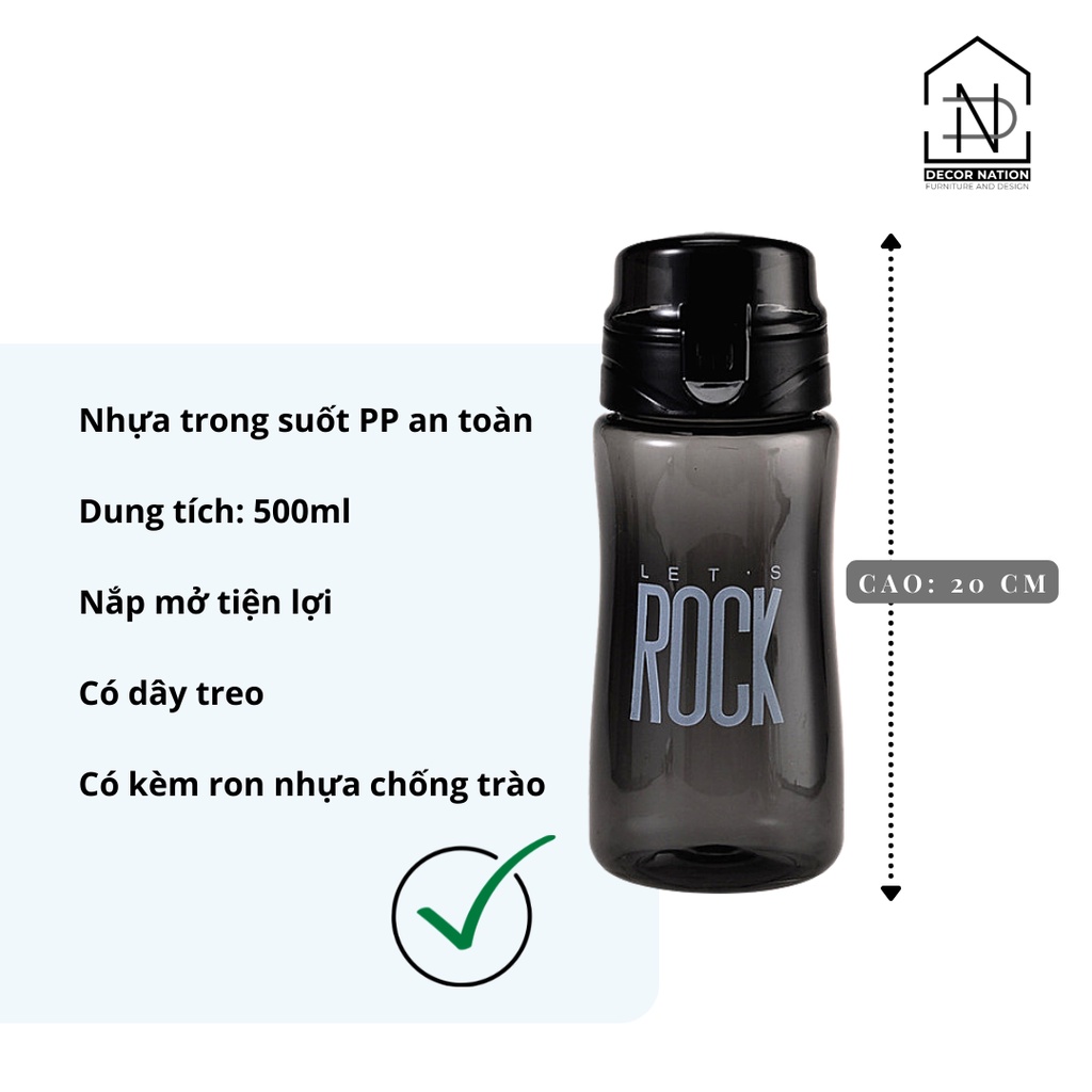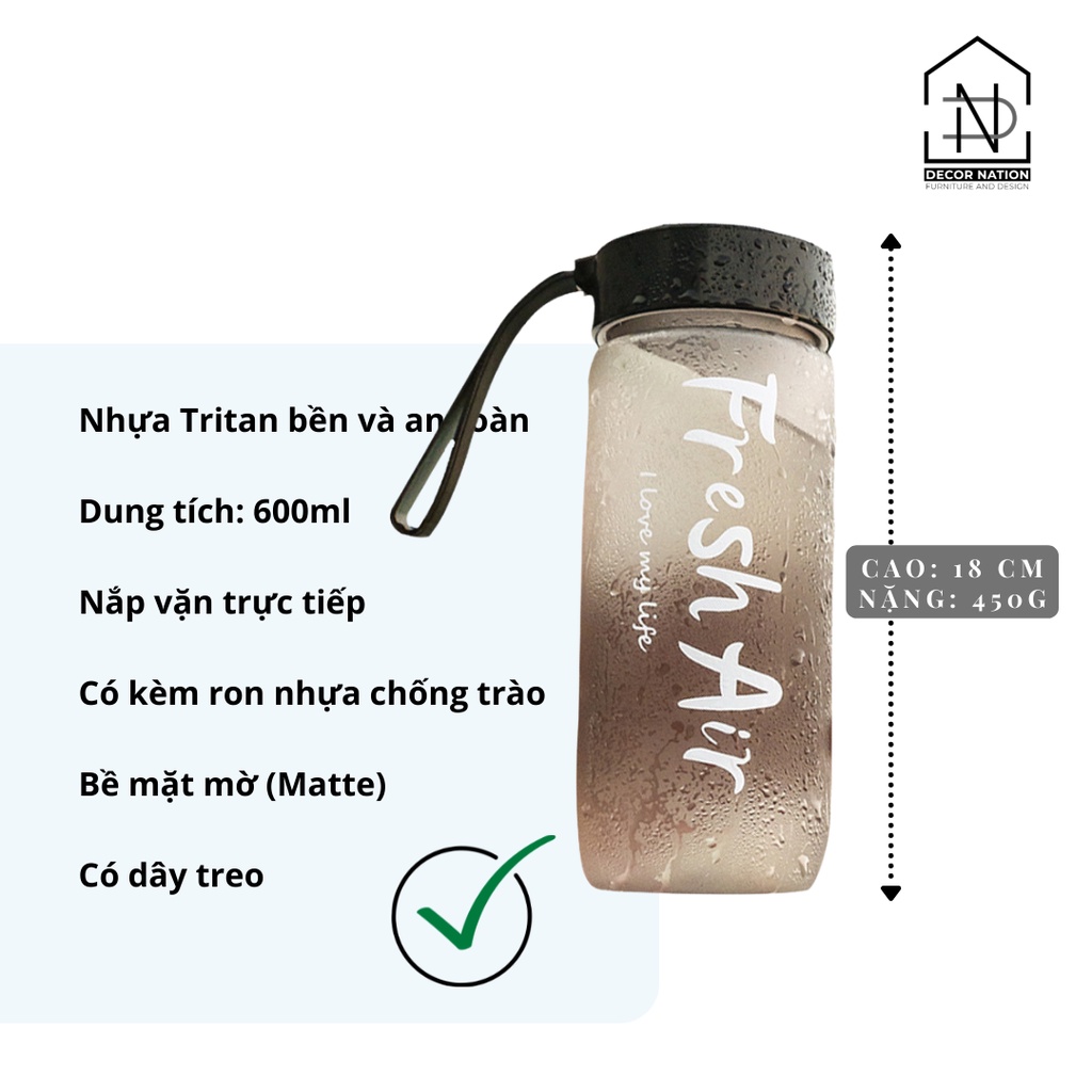 Bình Nước Nhựa Trong Suốt và Matte Có Quai Dung Tích 500ml-520ml-600ml Thể Thao Học SinhTHÔNG TIN SẢN PHẨM
