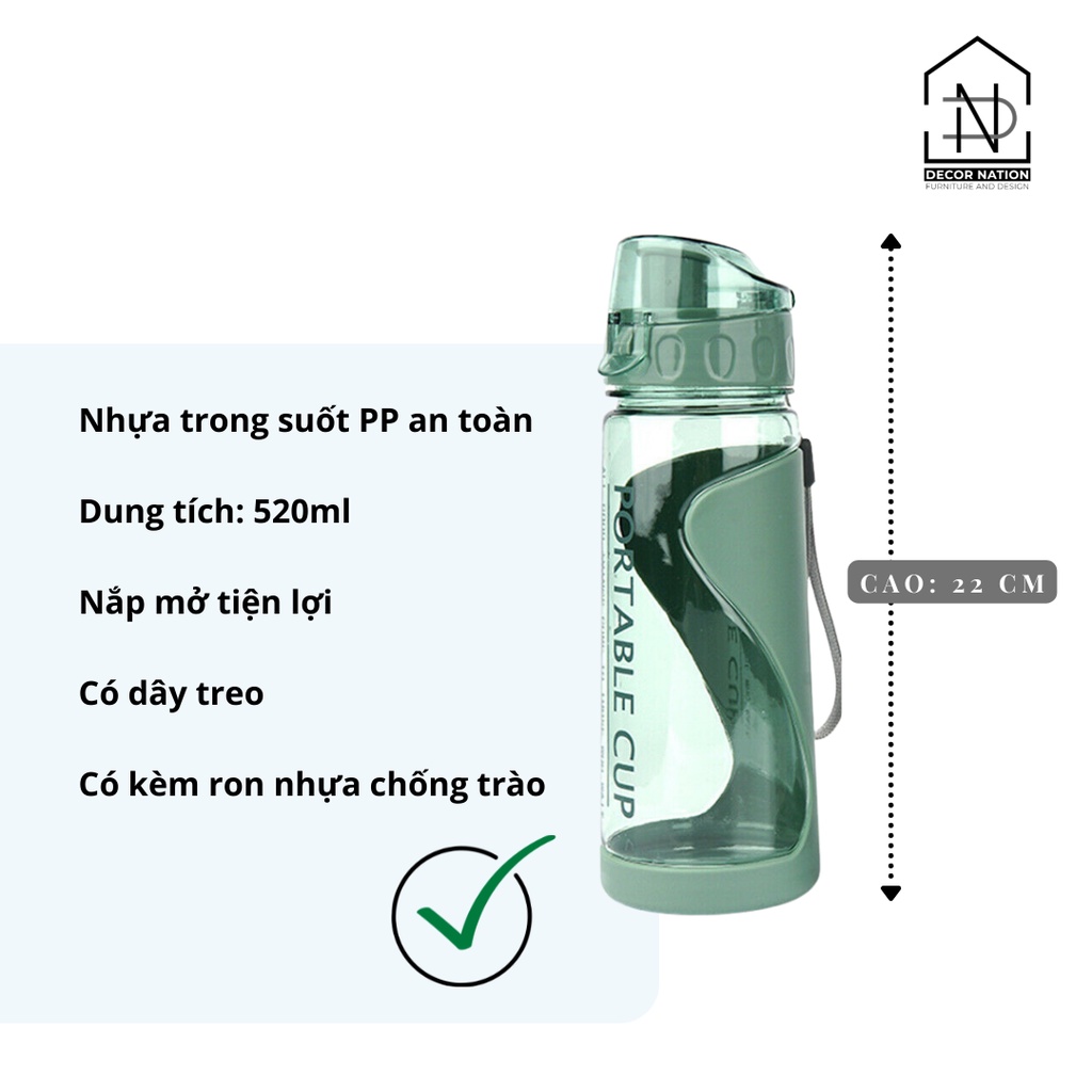 Giới thiệu Bình Nước Nhựa Trong Suốt và Matte Có Quai Dung Tích 500ml-520ml-600ml Thể Thao Học Sinh