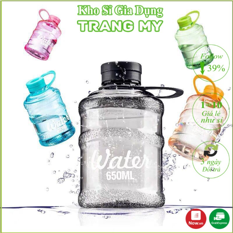 Bình nước nhựa trong Water dung tích 650ml có quai cầm tiện lợi nhiều màu sắc phong cách Hàn quốc