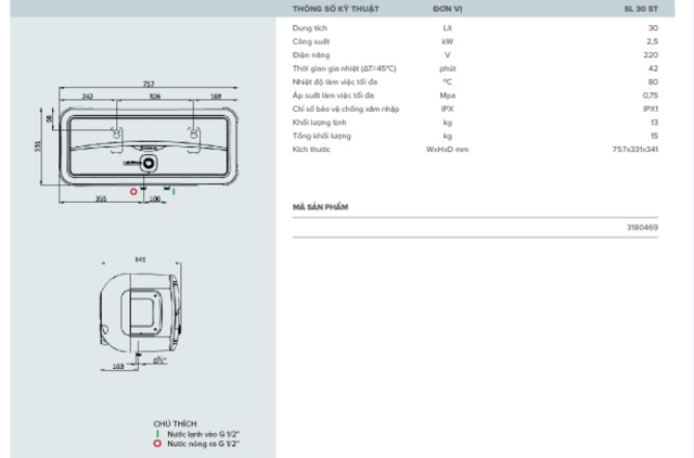 Thiết Bị Điện Gia Dụng > Thiết bị điện gia dụng lớn > Máy nước nóng || Bình nước nóng Ariston 30l SLIM2 RSSo sánh giá ×