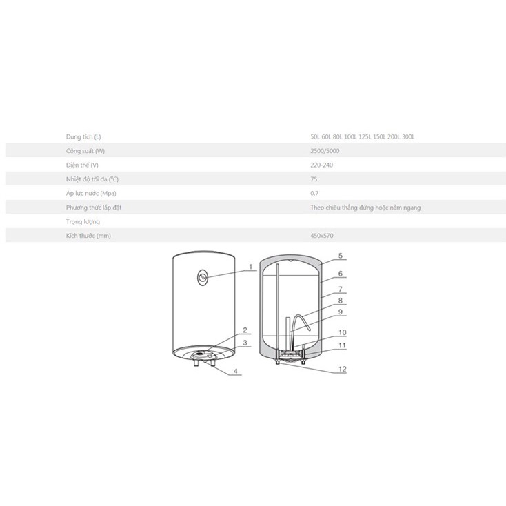 Bình nước nóng AQUA STOREThể tích lớn, lựa chọn treo đứng, treo ngang, đặt sàn