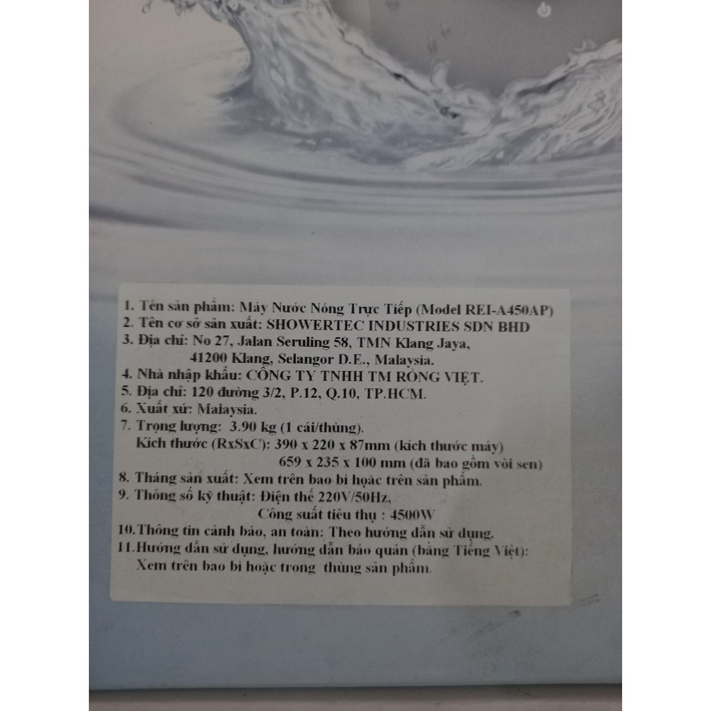 Giới thiệu Bình nước nóng lạnh trực tiếp Rinnai REI-A450NP điện 220V công suất 4500W